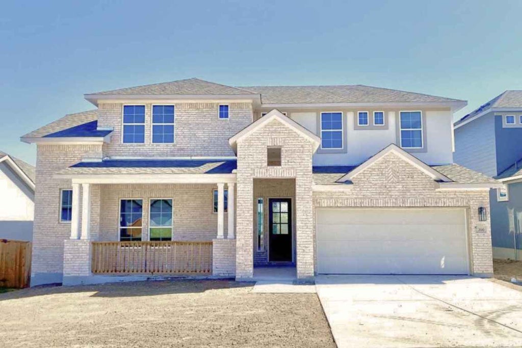 The Hattie | 4 Beds | 3 Baths | Game Room | Covered Outdoor Living | 2-Story | 2-Car Garage | 2,823 Sq Ft | Ready November The Hattie is a beautifully crafted 2-story home offering 2,823 sq ft of thoughtfully designed living space with 4 bedrooms, 3 full baths, a game room with tech center, and covered outdoor living—perfect for everyday comfort and entertaining. The entrance foyer leads to a private front bedroom, full bath, and utility room before opening into a vaulted family room filled with natural light. A 60" electric fireplace with porcelain surround anchors the space, creating a cozy yet modern focal point with views of the backyard through oversized windows. The open kitchen overlooks the family room and adjacent dining area and includes upgraded cabinets with soft-close doors and drawers, matte black hardware, beautiful stacked mosaic backsplash, upgraded quartz countertops, a center island, walk-in pantry, and abundant counter and cabinet space. Stairs tucked behind the dining room maintain the flow of the main floor while keeping the layout open and inviting. The primary suite spans the full depth of the home, with tray ceilings and French doors leading to a luxurious ensuite bath featuring dual vanities separated by a soaking tub, a mudset walk-in shower with herringbone tile backsplash, linen storage, and a spacious walk-in closet. Upstairs, a generous game room with a storage closet offers the perfect retreat. Two additional bedrooms with walk-in closets, a tech center for studying, and a full bathroom with dual vanities complete the second floor. Additional highlights include: Farmhouse-style front door Upgraded LVP, carpet, and tile throughout Covered outdoor living area 2-car garage The Hattie brings soaring ceilings, flexible space, and elegant finishes together in one stunning home—ready this November! Visit our model to see the Hattie in person and ask about our current buyer incentives!