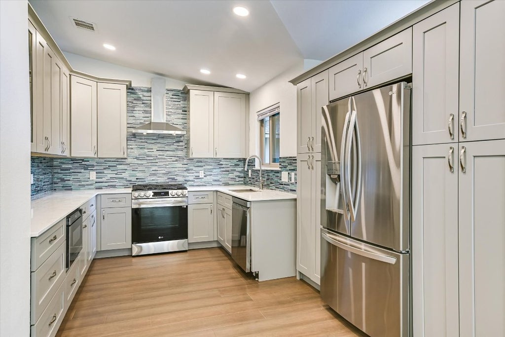 Appliances Dishwasher, Gas Cooktop, Disposal, Microwave, Oven, Refrigerator, Range Hood, Stainless Steel Appliance(s), Vented Exhaust Fan